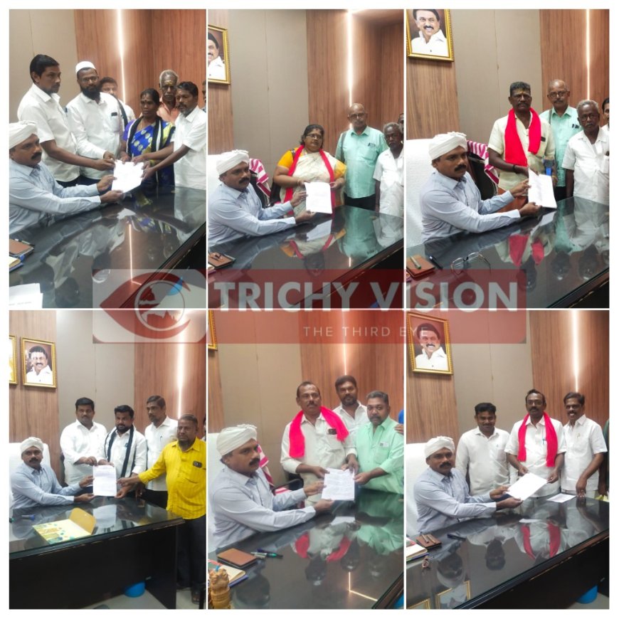 சாலையோர வியாபாரிகளுக்கான நகர விற்பனை குழு தேர்தல் திருச்சி மாநகராட்சி சார்பில் வருகிற 22ம் தேதி நடைபெறுகிறது. இந்தத் தேர்தலில் AITUC, CITU மனிதநேய வர்த்தக சங்கம் தலா இரண்டு இடங்களில் போட்டியிடுவது என முடிவு செய்யப்பட்டு இன்று திருச்சி மாநகராட்சி மண்டலம் இரண்டில் வேட்பு மனு தாக்கல் செய்யப்பட்டது.