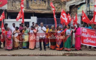 அகல் விளக்கேற்றி இந்திய கம்யூனிஸ்ட் கட்சியினர் ஆர்ப்பாட்டம்