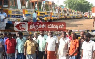 திருச்சியில் லாரி உரிமையாளர்கள் வேலை நிறுத்த போராட்டம்