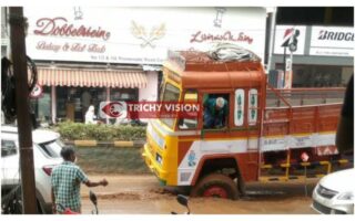 பாதாள சாக்கடை குழியில் சிக்கிய லாரி – அவதியில்…