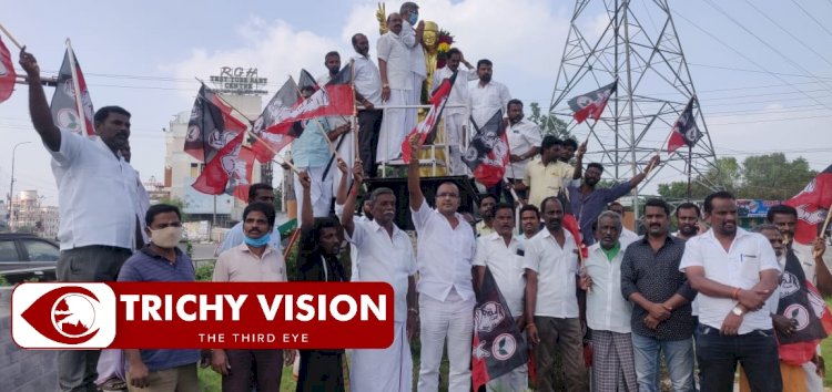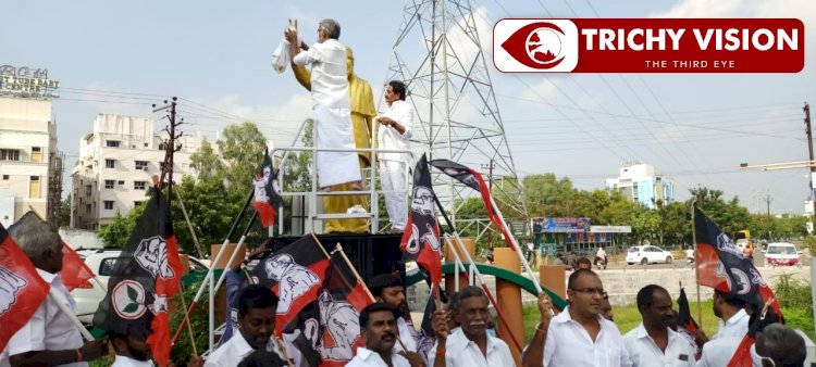 இந்த சம்பவத்தால், திருச்சியில் பரபரப்பு ஏற்பட்டது.அதன் பின், அ.தி.மு.க.,வினருடன் அங்கு வந்த சுற்றுலாத்துறை அமைச்சர் நடராஜன், எம்.ஜி.ஆர்., சிலையில் ஏற்கனவே போடப்பட்டிருந்த மாலைகளை அகற்றி சுத்தம் செய்தார். தொடர்ந்து, சிலைக்கு பால் ஊற்றி அபிஷகம் செய்த அவர், புதிய மாலை போட்டு மரியாதை செலுத்தினார்.
