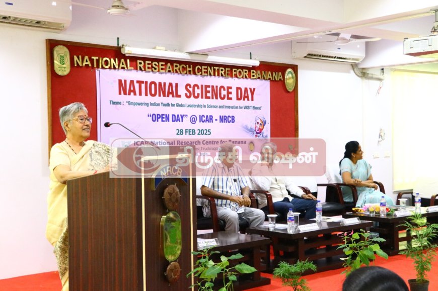 தேசிய வாழை ஆராய்ச்சி மையம் தேசிய அறிவியல் தினத்தைக் கொண்டாடியது.திருச்சிராப்பள்ளியில் உள்ள தேசிய வாழை ஆராய்ச்சி மையம் “அறிவியல் மற்றும் புதுமைகளில் இளைஞர்களின் தலைமைத்துவம் – வளர்ச்சியடைந்த பாரதம்” என்ற கருப்பொருளுடன் தேசிய அறிவியல் தினத்தை 28 பிப்ரவரி 2025 அன்று கொண்டாடியது. இந்த நிகழ்ச்சியில் திருச்சிராப்பள்ளி மற்றும் அதைச் சுற்றியுள்ள பல்வேறு பள்ளிகள் மற்றும் கல்லூரிகளைச் சேர்ந்த 5,000 மாணவர்கள், 400 விவசாயிகள் மற்றும் பொதுமக்கள் கலந்து கொண்டனர்.