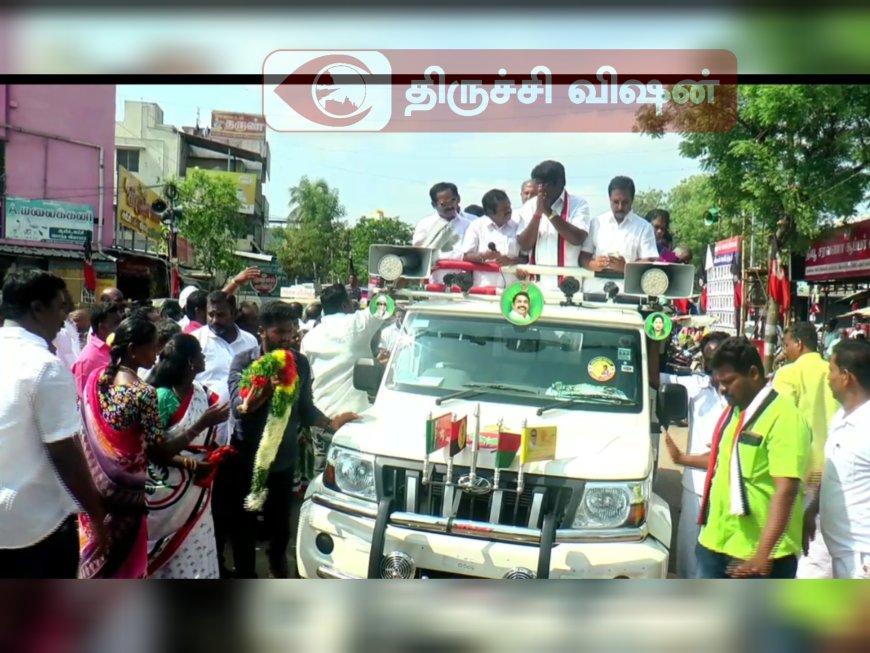 முன்னதாக, திருச்சி சமயபுரம் நால்ரோடு பகுதியில் உள்ள மாரியம்மன் கோவிலில் சிறப்பு வழிபாடு நடத்தி இறுதிக்கட்ட பிரச்சாரத்தை துவக்கினர். அதனைத் தொடர்ந்து, அதிமுகவினர் அந்த பகுதியில் உள்ள கடைகள் மற்றும் பொதுமக்களிடம் துண்டு பிரசுரங்களை வழங்கி இரட்டை இலை சின்னத்திற்கு வாக்குகளை சேகரித் தனர்.