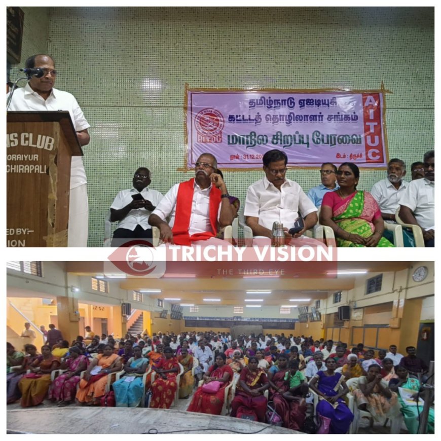 தமிழ்நாடு ஏஐடியுசி கட்டடத் தொழிலாளர் சங்கத்தின் மாநில நிர்வாகக் குழு மற்றும் மாநில பிரதிநிதிகள் சிறப்புப் பேரவைக் கூட்டம் 2024 டிசம்பர் 30 மற்றும் 31 தேதிகளில் திருச்சி, உறையூர், ஜவுளி உற்பத்தியாளர் திருமண மண்டபத்தில் மாநிலத் தலைவர் தோழர் கே.இரவி தலைமையில் நடைபெற்றது.