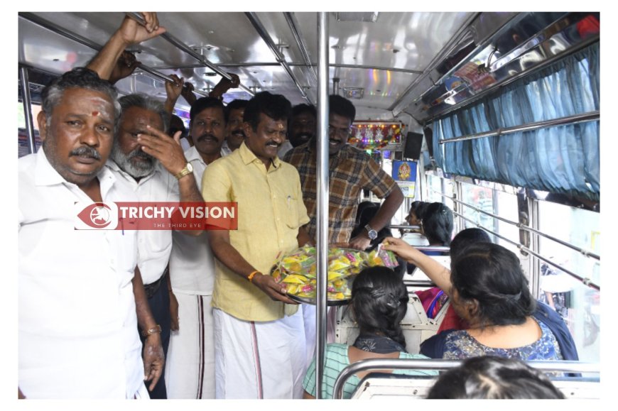 அமைச்சர் உதயநிதி ஸ்டாலினின் 46 வது பிறந்தநாள் விழாவை முன்னிட்டு திருச்சி தெற்கு மாவட்ட கழக செயலாளர் அமைச்சர் அன்பில் மகேஸ் பொய்யாமொழி வழி காட்டுதலின் பேரில் திருச்சி மாநகரக் கழக செயலாளர் மு.மதிவாணன் தலைமையில், திருச்சி சிந்தாமணி அண்ணா சிலை அருகில் தெற்கு மாநகரக் கழக நிர்வாகிகள் மற்றும் பகுதி வட்டக்கழக நிர்வாகிகள் அணிகளின் நிர்வாகிகள் கடைவீதி மற்றும் பேருந்துகளில் பயணம் செய்த மக்களுக்கு இனிப்பு வழங்கினார்.