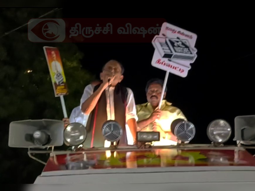 திருச்சி பாராளுமன்ற தொகுதியில் திமுக கூட்டணியில் போட்டியிடும் மதிமுக முதன்மை செயலாளர் துரை வைகோவை ஆதரித்து மதிமுக பொதுச்செயலாளர் வைகோ ஸ்ரீரங்கம் பகுதியில் தேர்தல் பரப்புரை மேற்கொண்டார்.