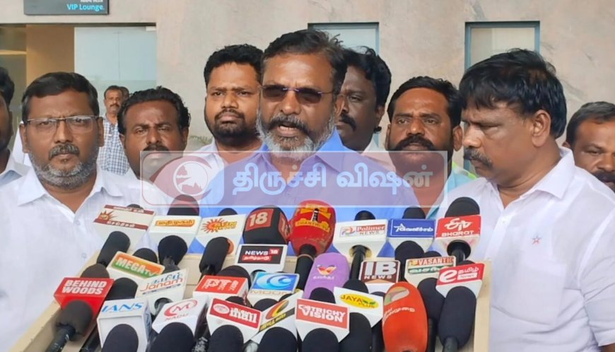 விடுதலை சிறுத்தை கட்சியின் தலைவரும், சிதம்பர நாடாளுமன்ற உறுப்பினருமான எழுச்சித்தமிழர் முனைவர் தொல்.திருமாவளவன் அரியலூர் மாவட்டம், ஆட்சியர் அலுவலகத்தில் நடைபெற்ற ஆய்வு கூட்டத்தில் பங்கு பெற்று பின்னர் சென்னை செல்வதற்காக திருச்சி விமான நிலையத்திற்கு வருகை தந்தார்.அப்பொழுது அவர் செய்தியாளர்களுக்கு அளித்த பேட்டியில்